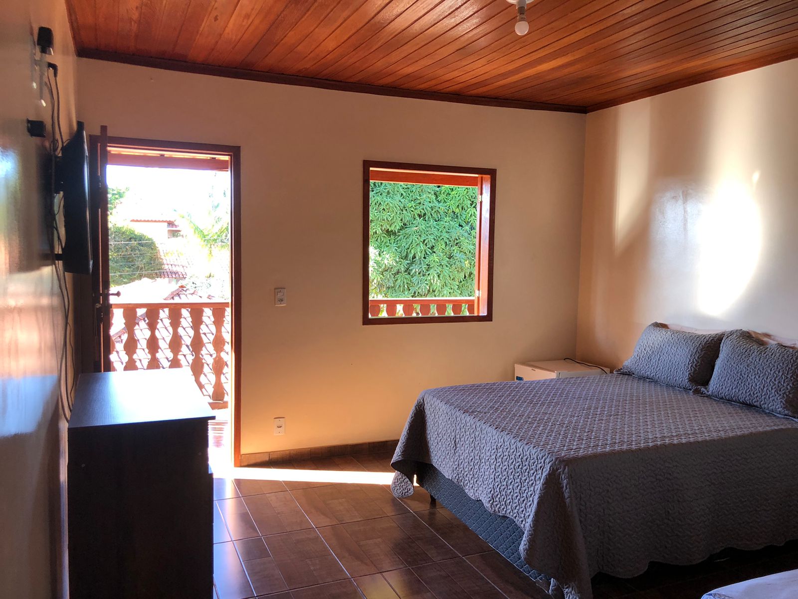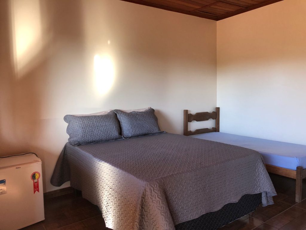 Quarto com banheiro privativo, TV e frigobar